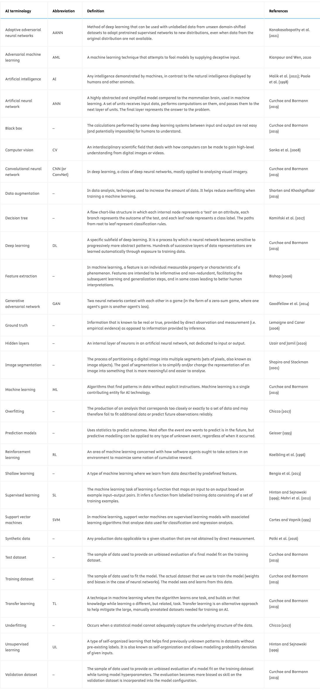 Table 1 Glossary of artificial intelligence (AI) terminology