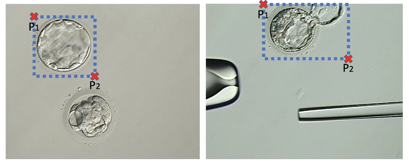 Figure 5 Examples of two blastocyst micrographs and the bounding pox defined by and .