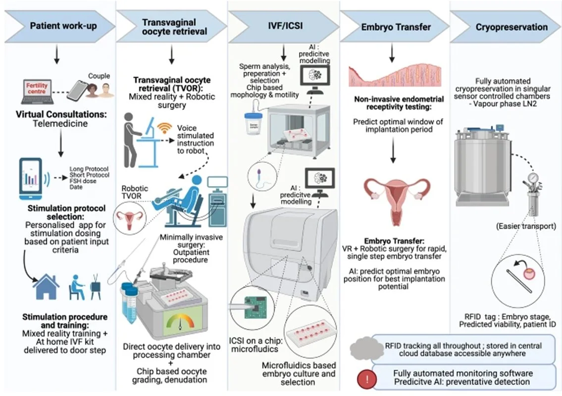 Recent innovations in automation — including the adoption of digital tools, robotics, and artificial intelligence throughout the IVF treatment pathway — have the potential to transform assisted reproductive technologies by reducing procedural complexity, improving clinical efficiency, lowering costs, and expanding accessibility, all while reshaping the roles of fertility professionals and encouraging continued research into practical implementation.