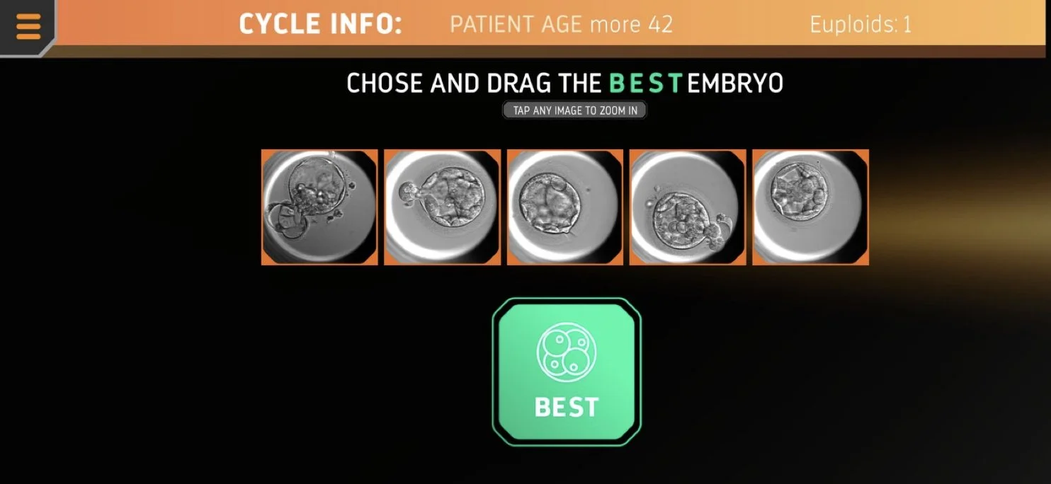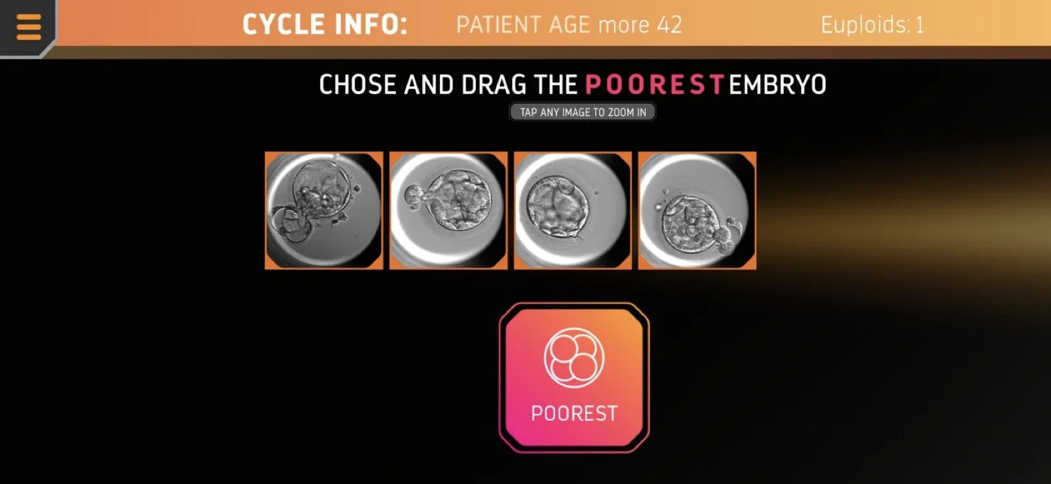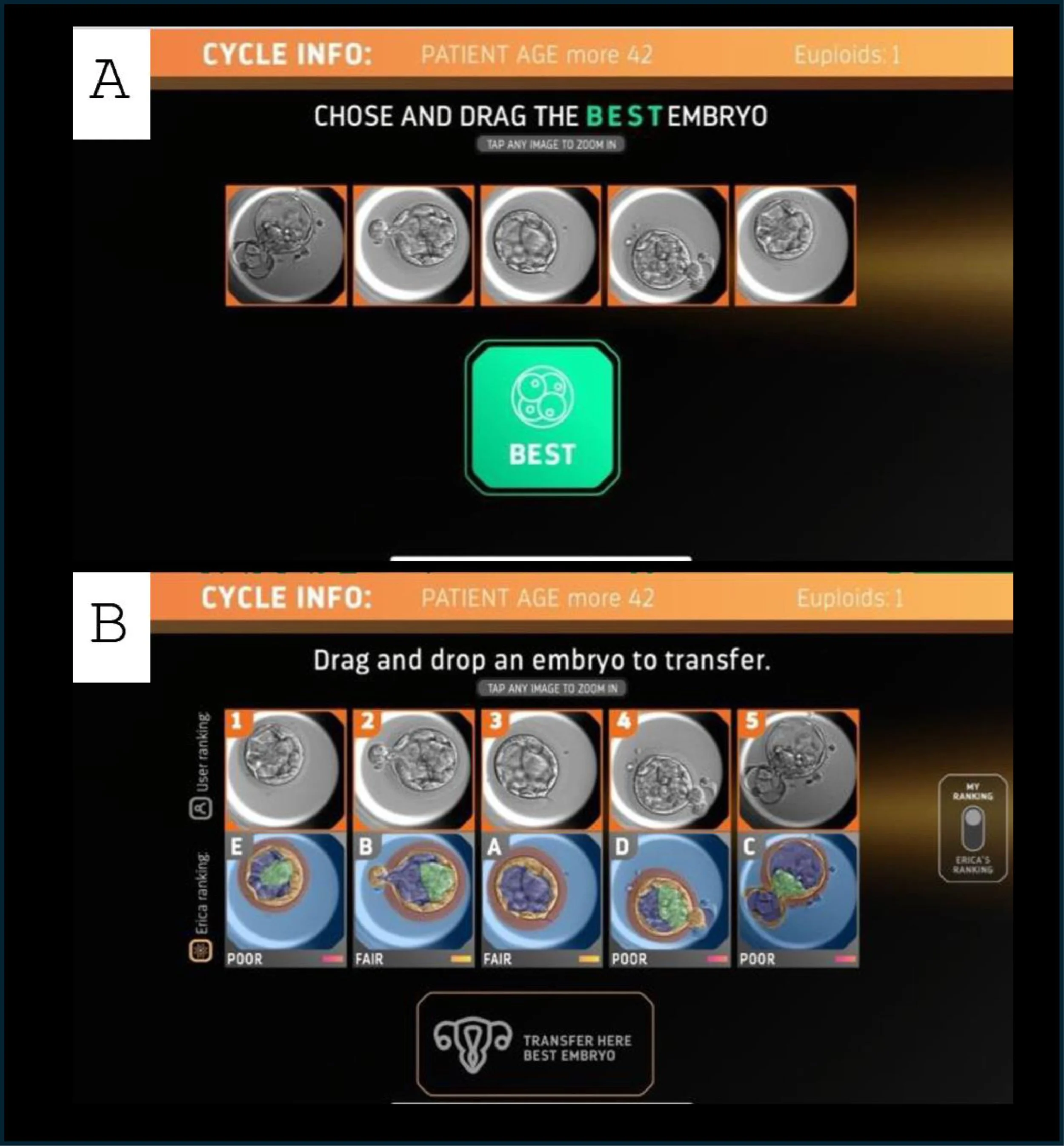 The question still remains, however: how might AI predictions influence the decision-making process of clinical embryologists? The research herein presented sets out to quantify this with a simulation that uses embryos of known ploidy in a ‘game-like’ scenario. This ‘gamification’, while important to deduce how AI influences choice for embryo selection, also acts as a training exercise, familiarizing the operator with the software that can be used in clinical settings and educating themselves to the dilemma of choice.