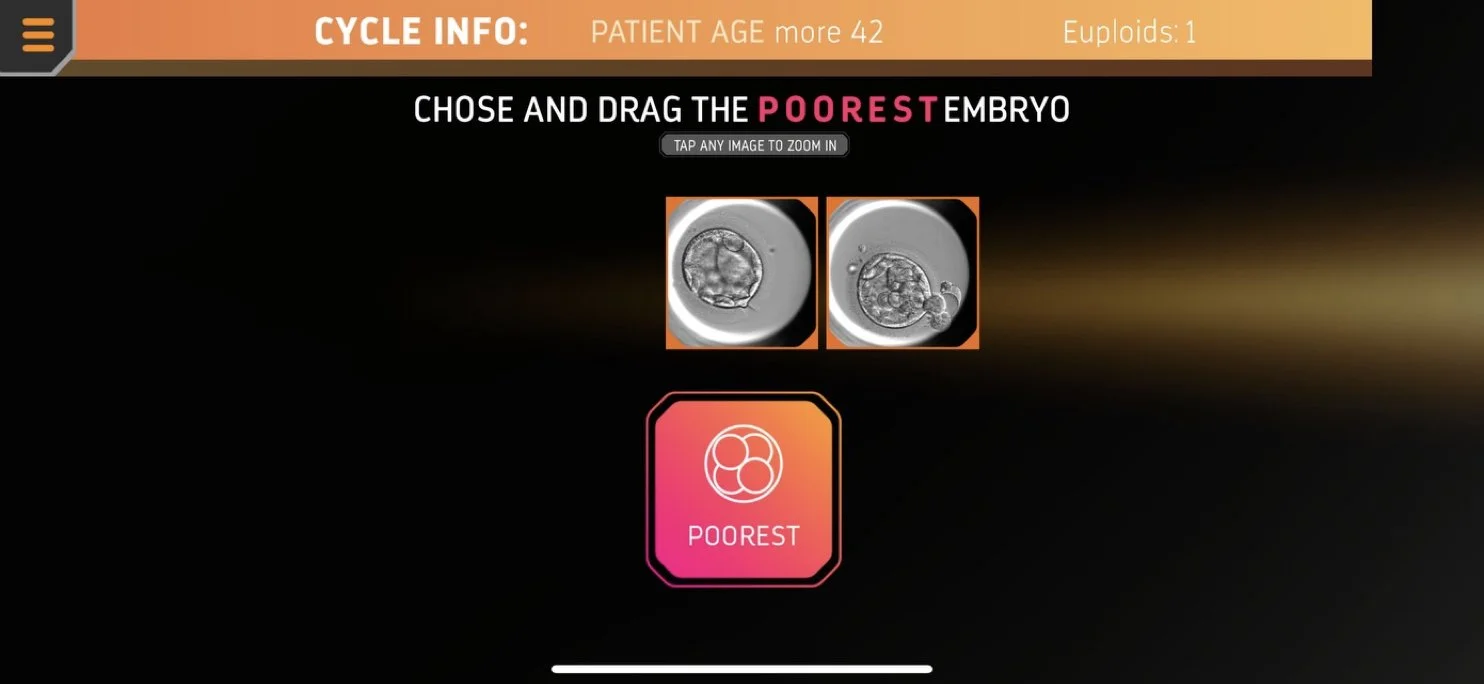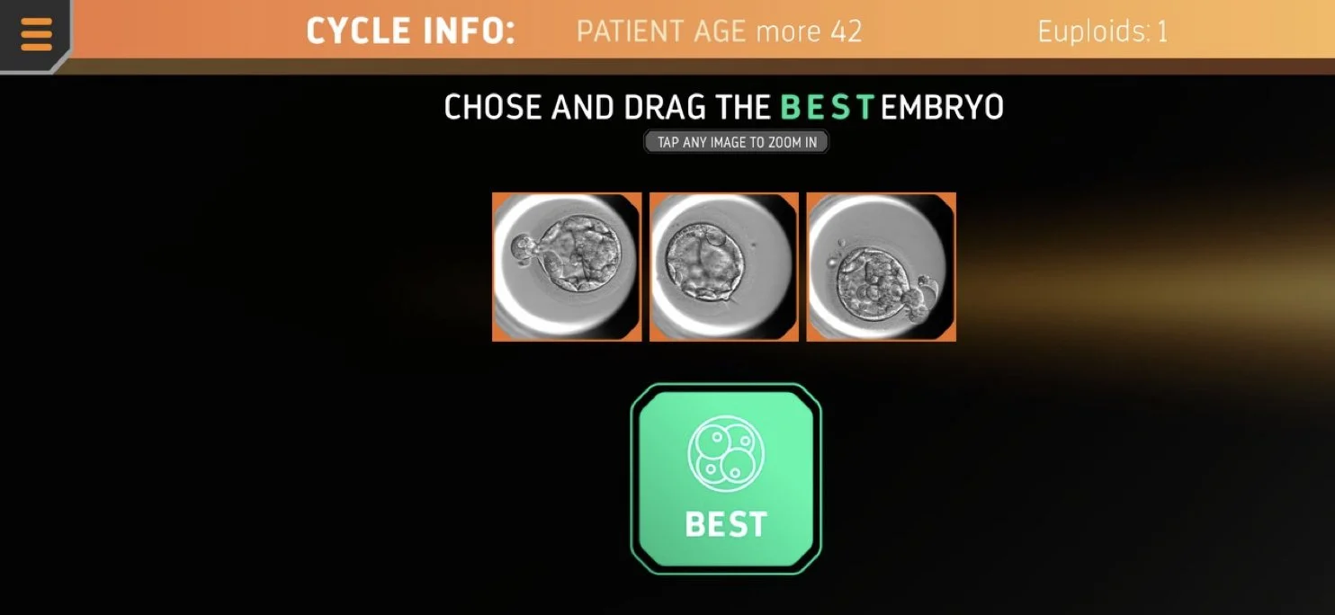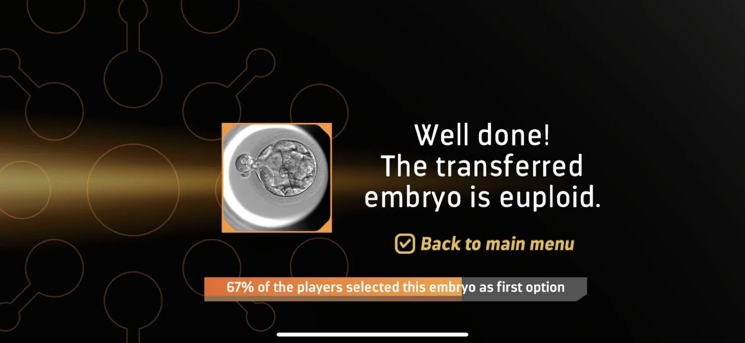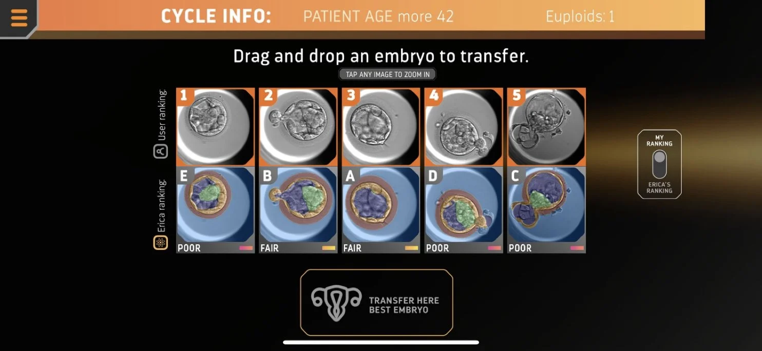 The question still remains, however: how might AI predictions influence the decision-making process of clinical embryologists? The research herein presented sets out to quantify this with a simulation that uses embryos of known ploidy in a ‘game-like’ scenario. This ‘gamification’, while important to deduce how AI influences choice for embryo selection, also acts as a training exercise, familiarizing the operator with the software that can be used in clinical settings and educating themselves to the dilemma of choice.